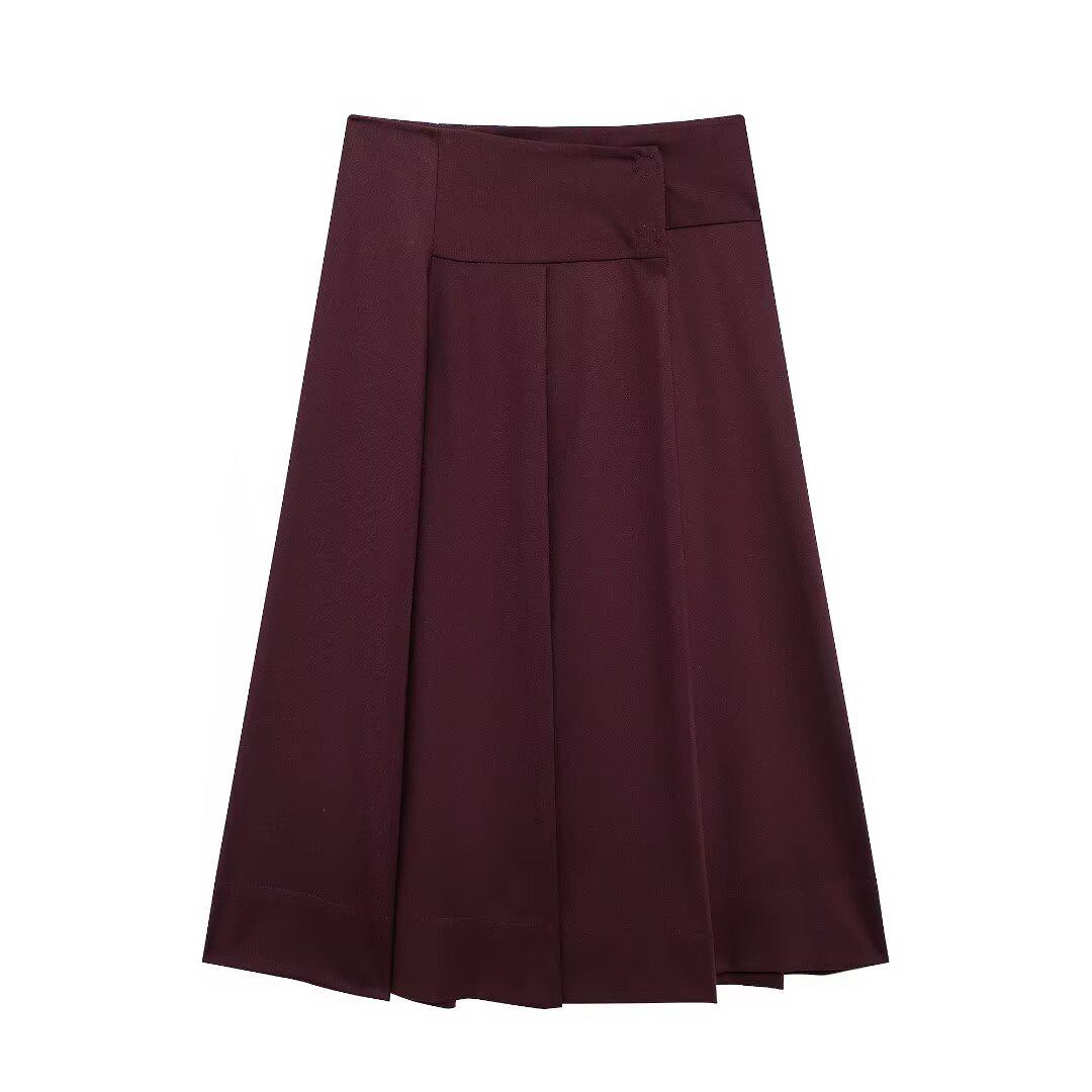 2024 Осень/Зима Женская Широкая Плиссированная Миди-юбка - Элегантная Новая Мода Large вино красного