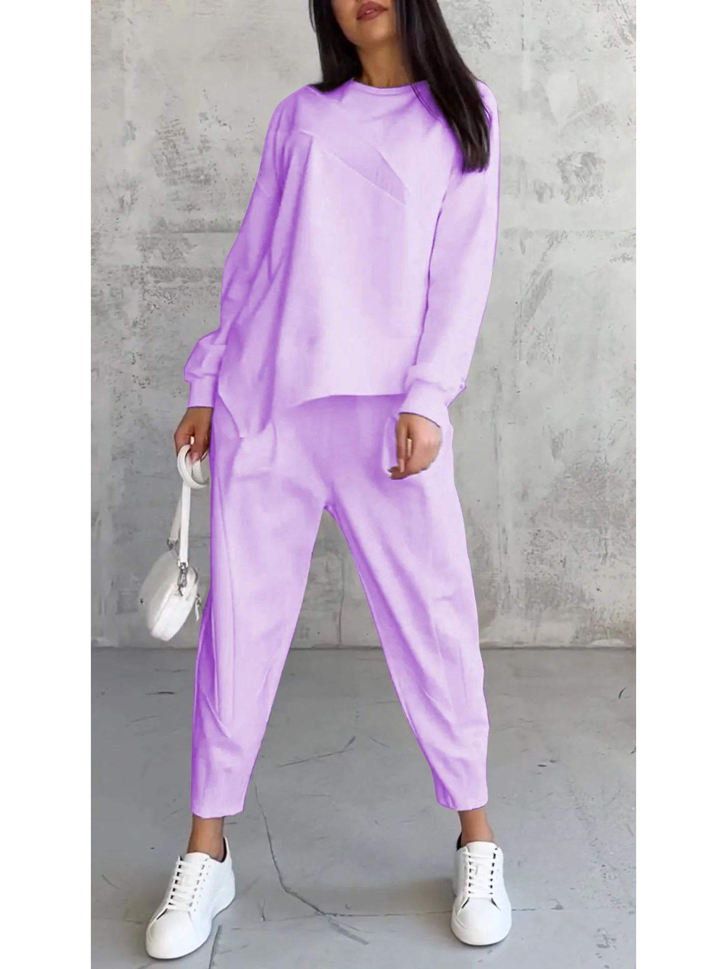 2024 Осень/Зима Женский Повседневный Свитшот с Круглым Вырезом, Свободного Кроя, с Длинным Рукавом, Комплект 5XL фиолетовый