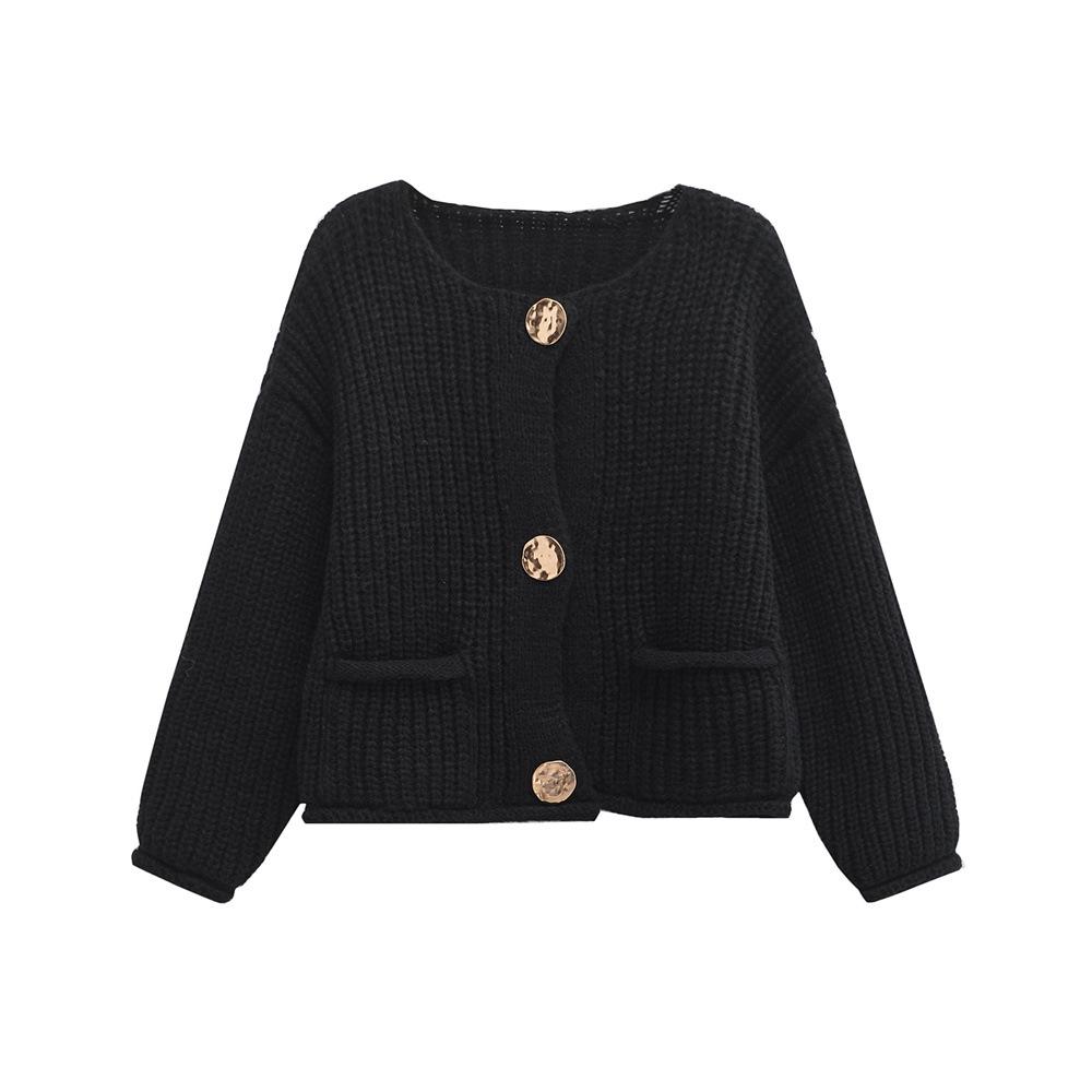2024 Осень/Зима Женское Универсальное Повседневное Пальто с Длинным Рукавом - Простой Дизайн с Круглым Вырезом Medium чёрный