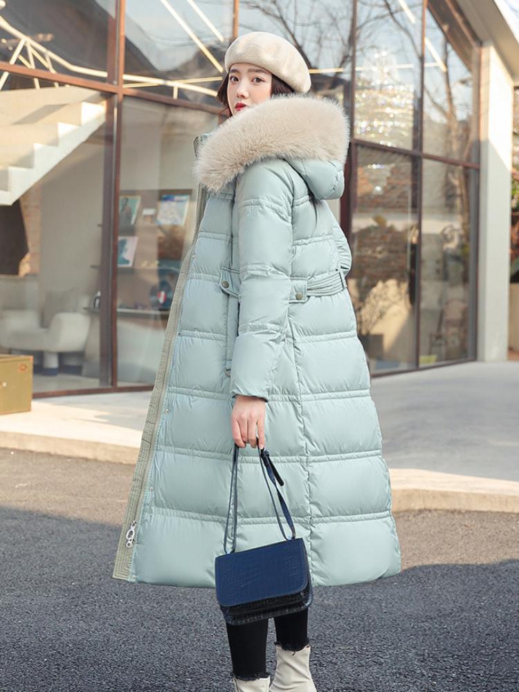 2024 Осень Зима Новая Куртка-Парка из хлопка-пуховика Женская Длинная Куртка-Парка С Воротником Из Искусственного Меха Толстая Свободная Куртка-Парка Большого Размера XXL хаки/море салатовый