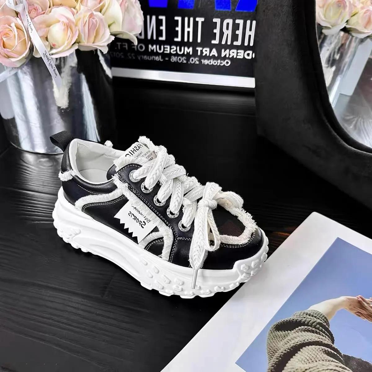 2024 Осень Новые женские туфли Толстая подошва с приподнятыми кисточками Универсальные повседневные спортивные нескользящие туфли для папы Корейская версия Повседневная обувь 40 чёрный