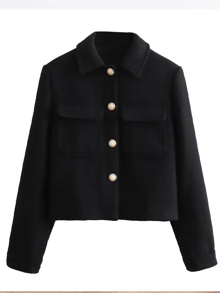 2024 Осень Новый продукт Женская мода Маленький Аромат Стиль Отложной Воротник Костюм Смешанный Короткий Пальто Куртка L чёрный