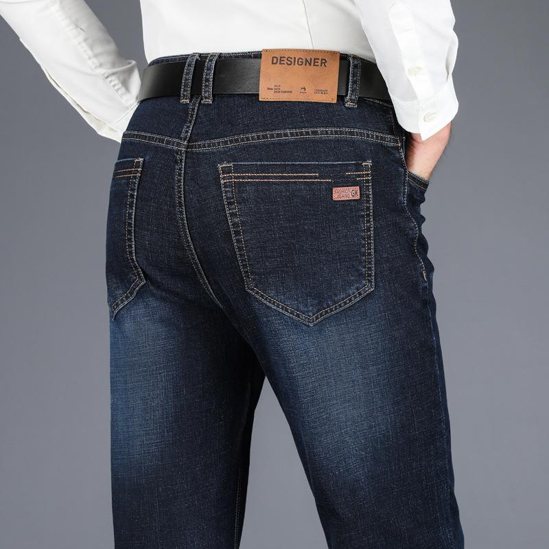 2024 Осень-зимние джинсы, эластичные свободные прямые брюки делового покроя для мужчин, повседневные темные брюки