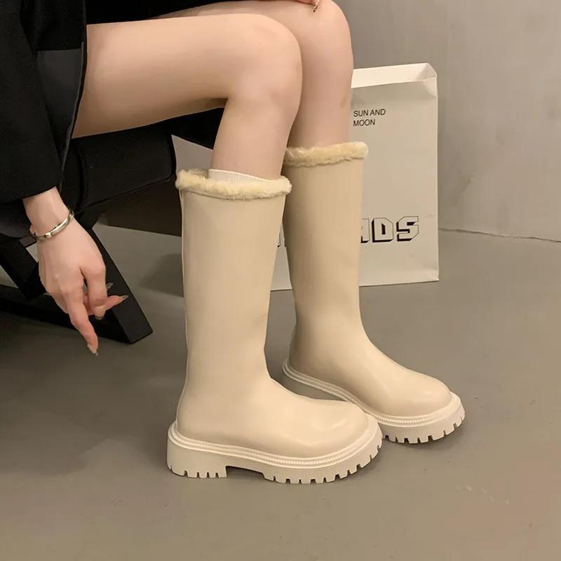 2024 Ретро Западные Ковбойские Сапоги Массивный Каблук Круглый Носок Модные Сапоги Толстая Подошва Теплые Зимние Ботинки Универсальная Женская Обувь Готика 42