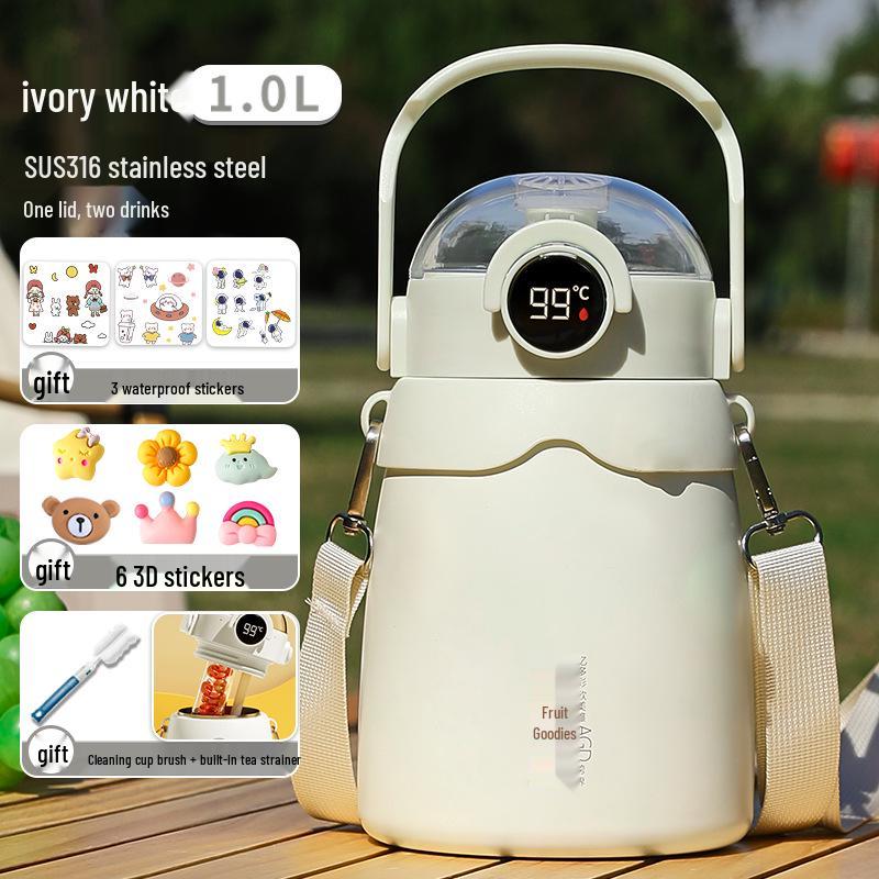 2024 Умный термос из нержавеющей стали 316 с портативным большим объемом и заварником для чая 1L