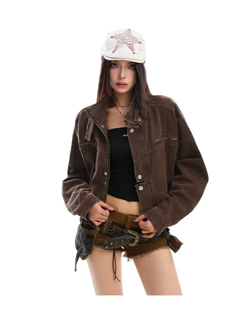2024, американская джинсовая куртка в стиле ретро, женская свободная короткая укороченная куртка, повседневное шикарное пальто большого размера, ранняя осень, винтажный стиль