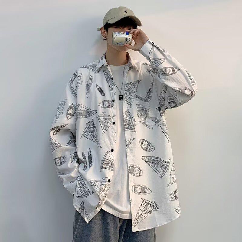 2024 винтажная рубашка мужская летняя повседневная студенческая свободная нишевая дизайнерская забавная новая мужская верхняя часть для ношения на открытом воздухе 3XL белый