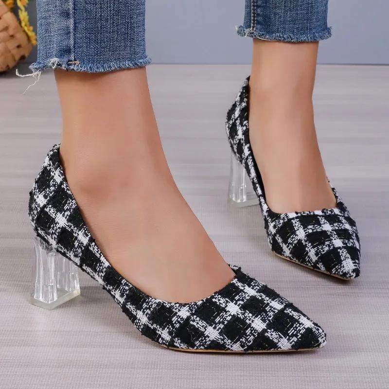2024 женская обувь, базовые женские туфли на высоком каблуке, классические модельные туфли-лодочки, женские разноцветные туфли с острым носком на мелком массивном каблуке, женские туфли