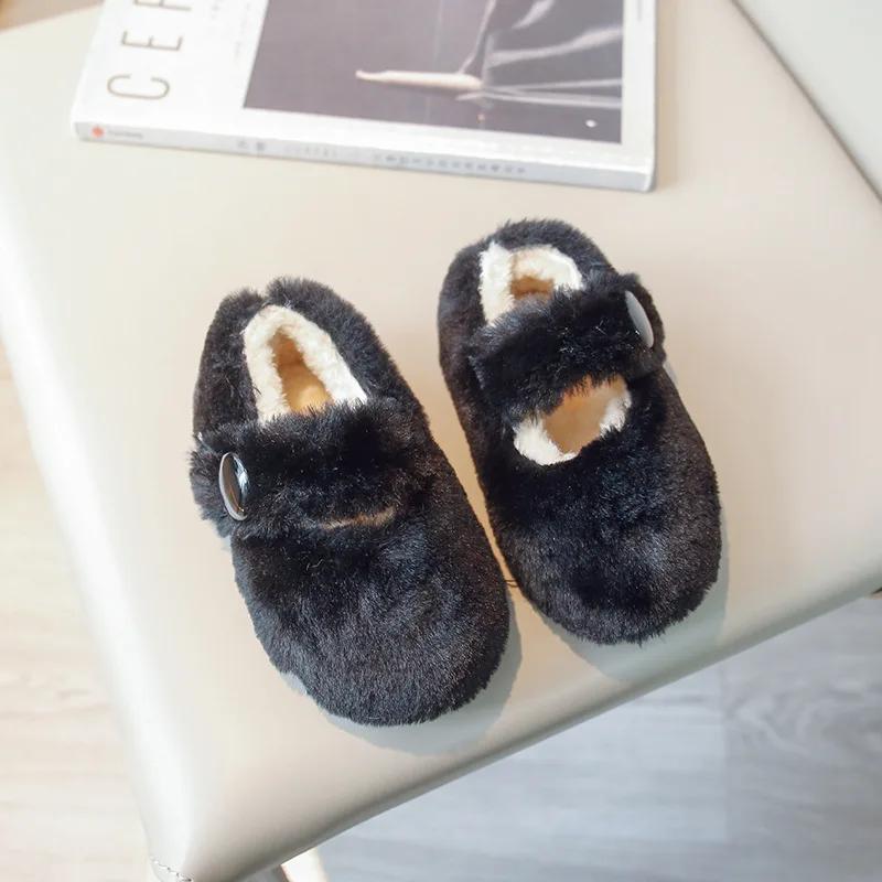 2024 зимняя новая обувь для девочек, мягкая теплая повседневная обувь для принцессы, модные универсальные женские кроссовки, трендовая классическая обувь для детей среднего размера 25insole15.8cm чёрный