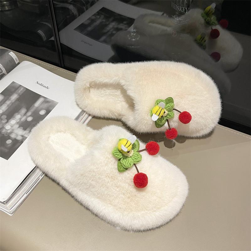 2024 зимняя обувь женские вишневые тапочки домашние повседневные женские пушистые шлепанцы осенние теплые плюшевые тапочки для спальни женские хлопковые туфли 35