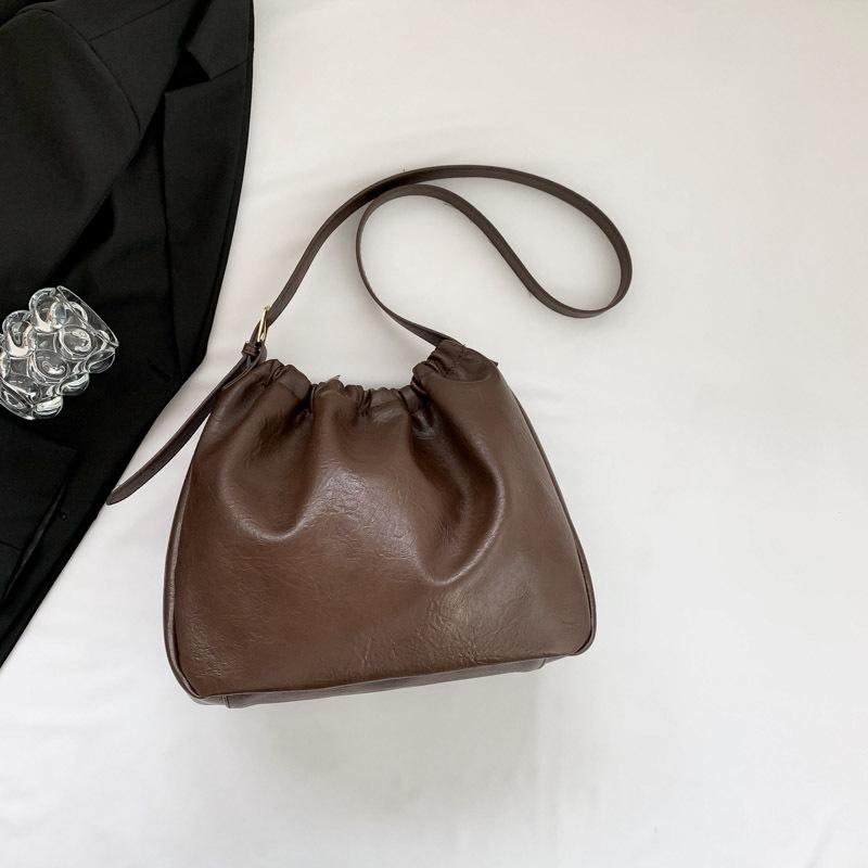 2024 зимняя ретро-сумка большой вместимости, новая женская сумка, модная универсальная сумка-мессенджер, высококачественная повседневная сумка-ведро на одно плечо коричневый