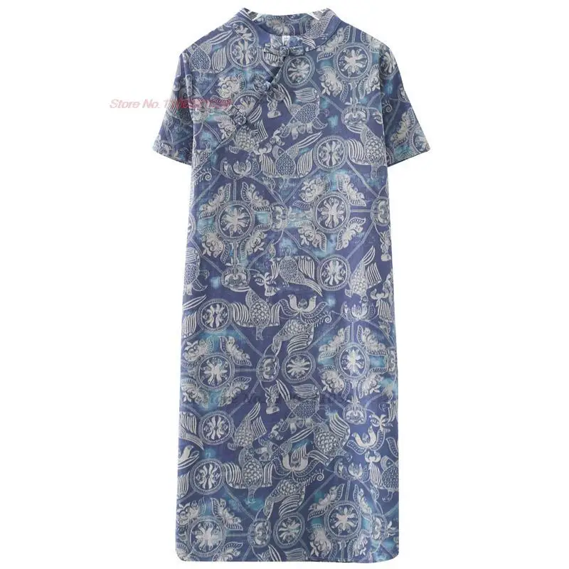 2024 китайское винтажное платье Ципао с национальным цветочным принтом платье Ципао из хлопка и льна улучшенное платье Ципао в Восточном фольклорном стиле