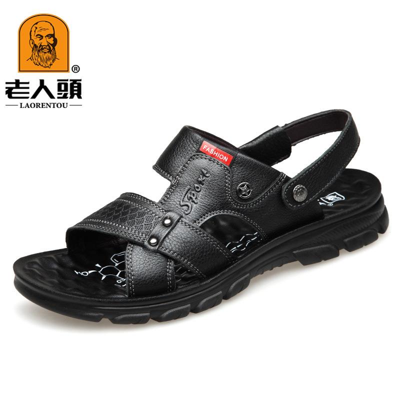 2024 летние кожаные сандалии для пожилых людей, мужская пляжная обувь из коровьей кожи первого слоя, сандалии с мягкой подошвой и нескользящей подошвой двойного назначения 38 чёрный