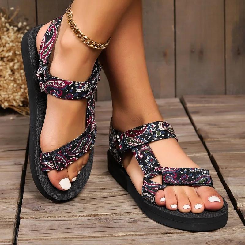2024 летняя женская обувь на плоской подошве, комплект пляжных сандалий из пеньковой веревки, уличные универсальные повседневные тапочки, женские сандалии большого размера 36 синий
