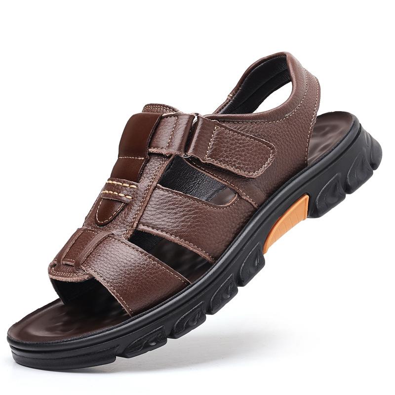 2024 лето новые сандалии мужские коровья кожа повседневные пляжные туфли мужские носят крутые шлепанцы на улице в машине 44 коричневый