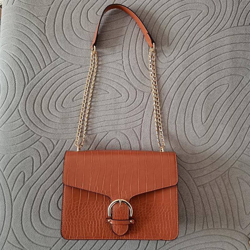 2024 модные женские сумки на ремне из кожи аллигатора, отличная маленькая сумка из искусственной кожи, сумка через плечо с цепочкой золотистого цвета коричневый