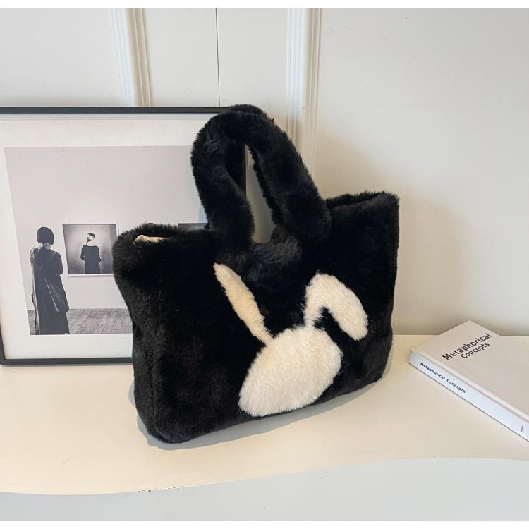 2024 новая большая шерстяная сумка-тоут женская осенне-зимняя милая сумка через плечо с рисунком кролика из мультфильма чёрный