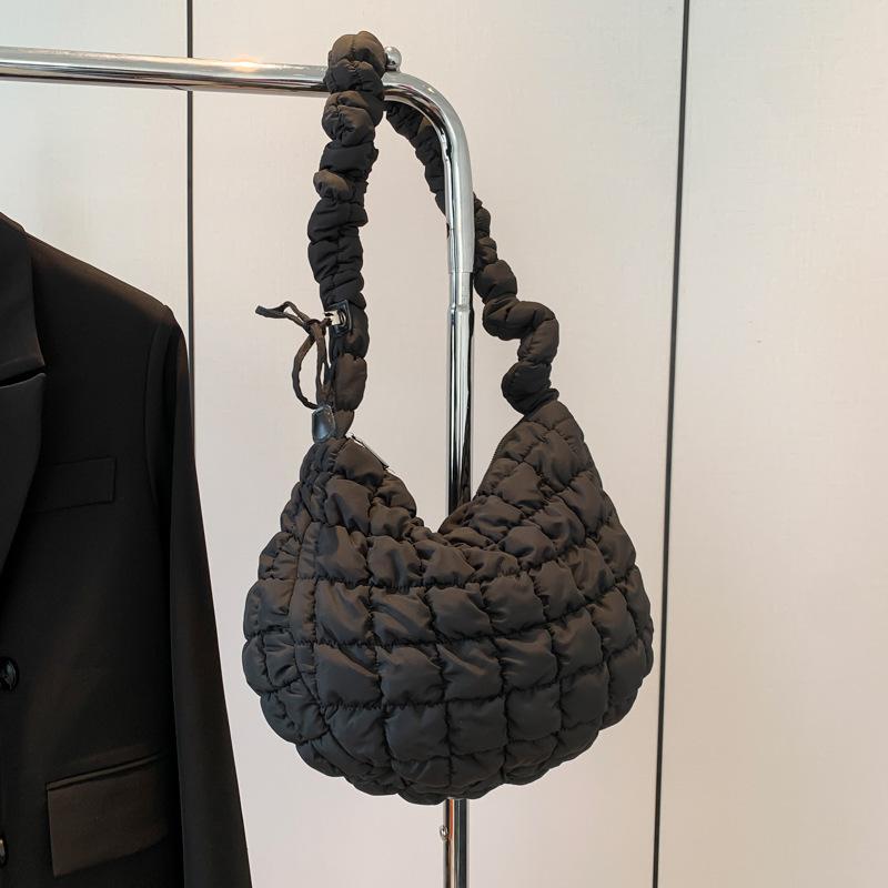 2024 новая плиссированная сумка-облако женская сумка-мессенджер через плечо модная хлопковая сумка для одежды подмышками сумка для пельменей чёрный