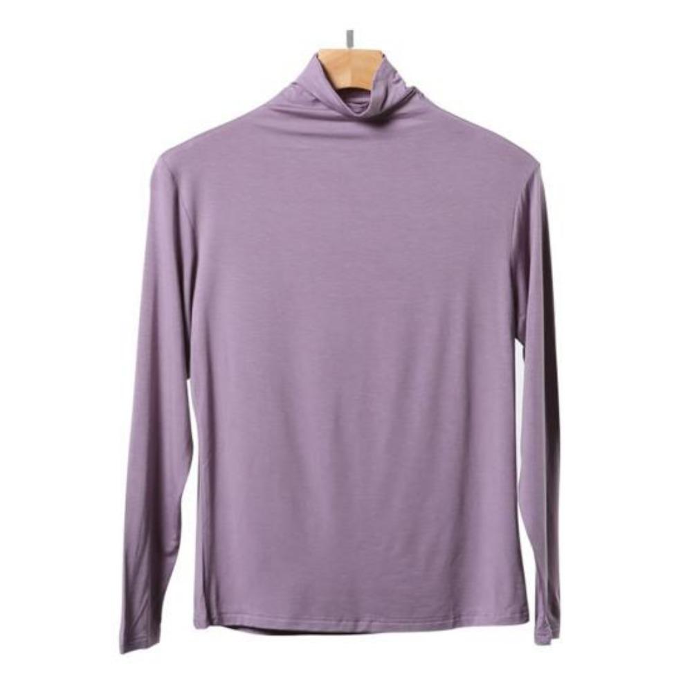 2024 новая рубашка с полувысоким воротом женская сетчатая красная однотонная модальная футболка с длинными рукавами Узкая универсальная блузка M фиолетовый