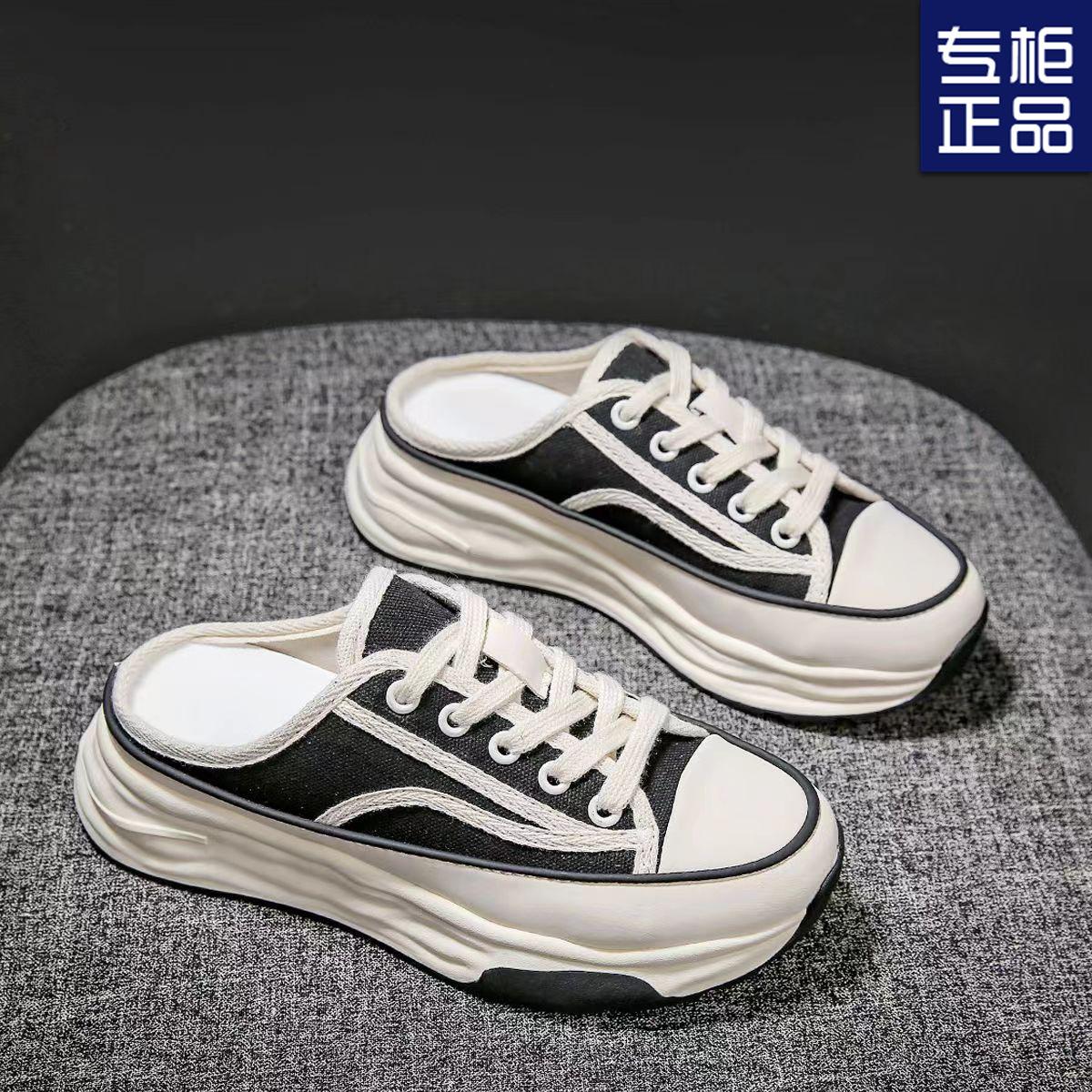 2024 новые туфли-мешки на толстой подошве, верхняя одежда, летняя обувь без каблука с одной педалью, ленивые туфли из холста для женщин в стиле интернет-знаменитости 40 чёрный