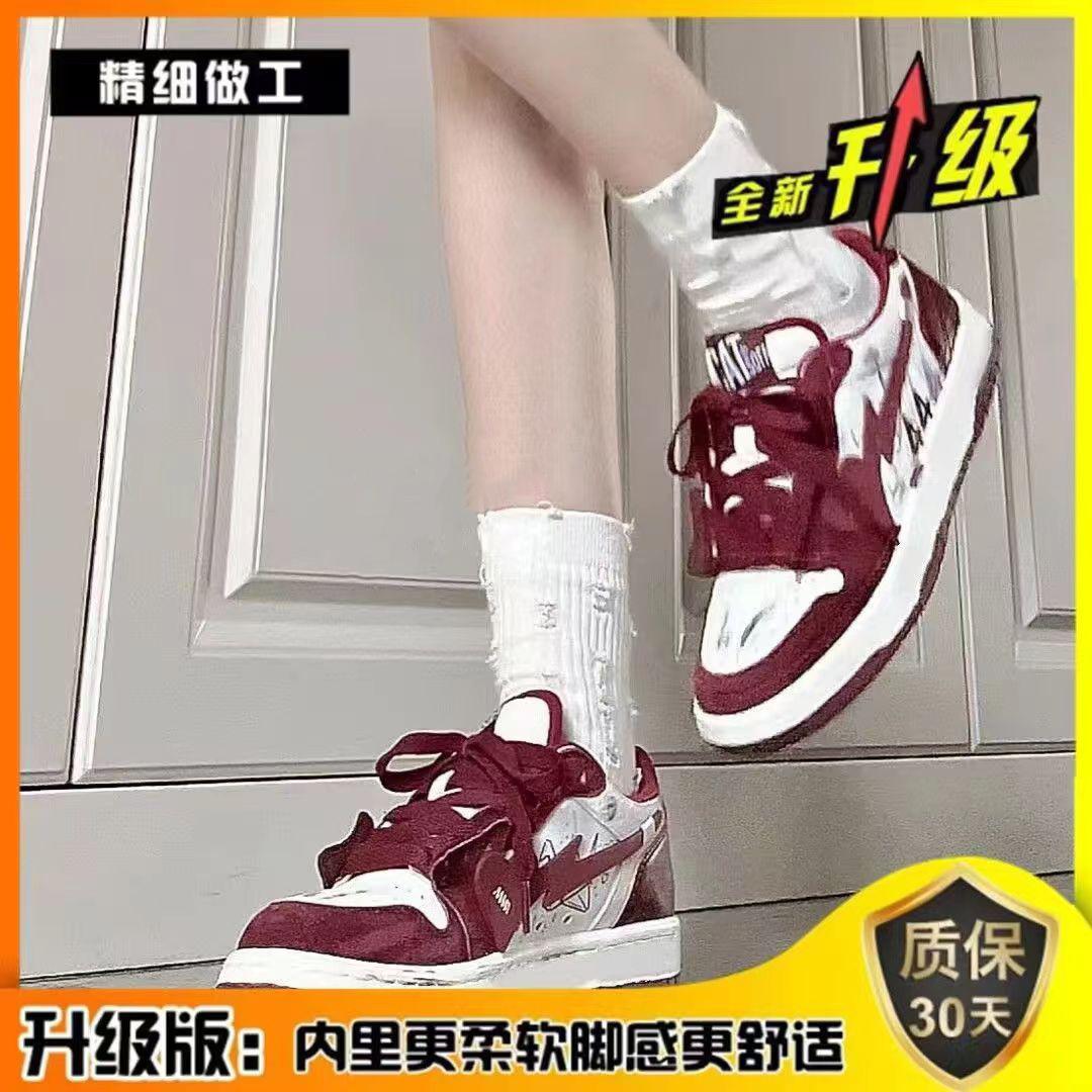 2024 оригинальная нишевая взрывная граффити старая ретро обувь для доски женская плоская повседневная уличная стрельба пара повседневная спортивная обувь 36