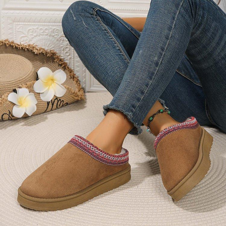 2024 осень и зима новые кружевные этнические модные зимние сапоги женские туфли большого размера утолщенная хлопковая обувь мода 36 верблюд
