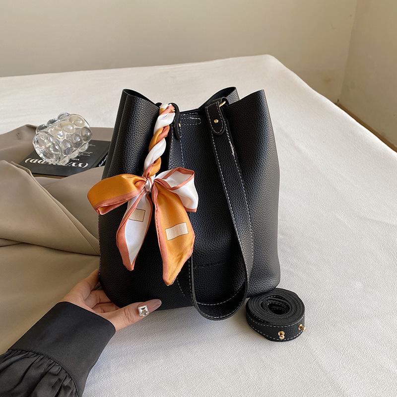 2024 осень новая ретро простая сумка-ведро модный нишевый дизайн модная простая сумка через плечо через плечо чёрный