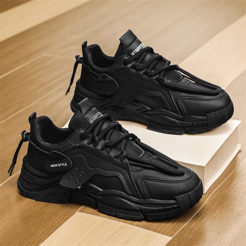 2024 осень новые мужские туфли кожаная поверхность водонепроницаемые мужские модные туфли универсальная платформа повседневные кроссовки для папы мужские модные туфли 44 чёрный