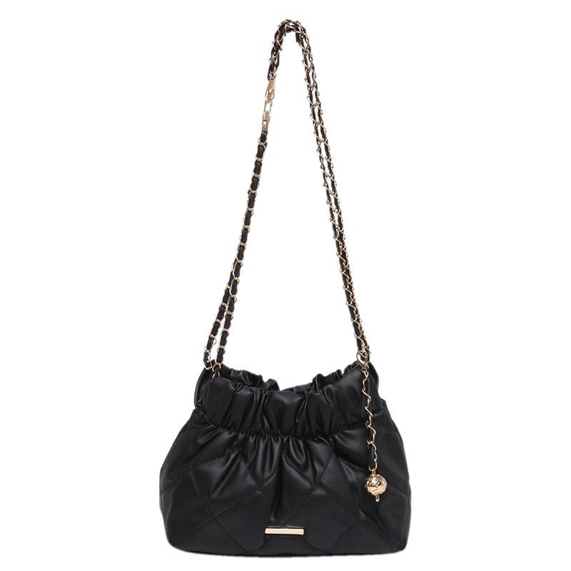 2024 ранняя осень большая вместительная новая темпераментная модная дизайнерская сумка через плечо в иностранном стиле ромбовидная цепочка сумка-ведро чёрный