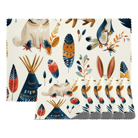 Placemats Set of 6 Non Slip Washable Table Placemats Ethnic Indian Cartoon Animals