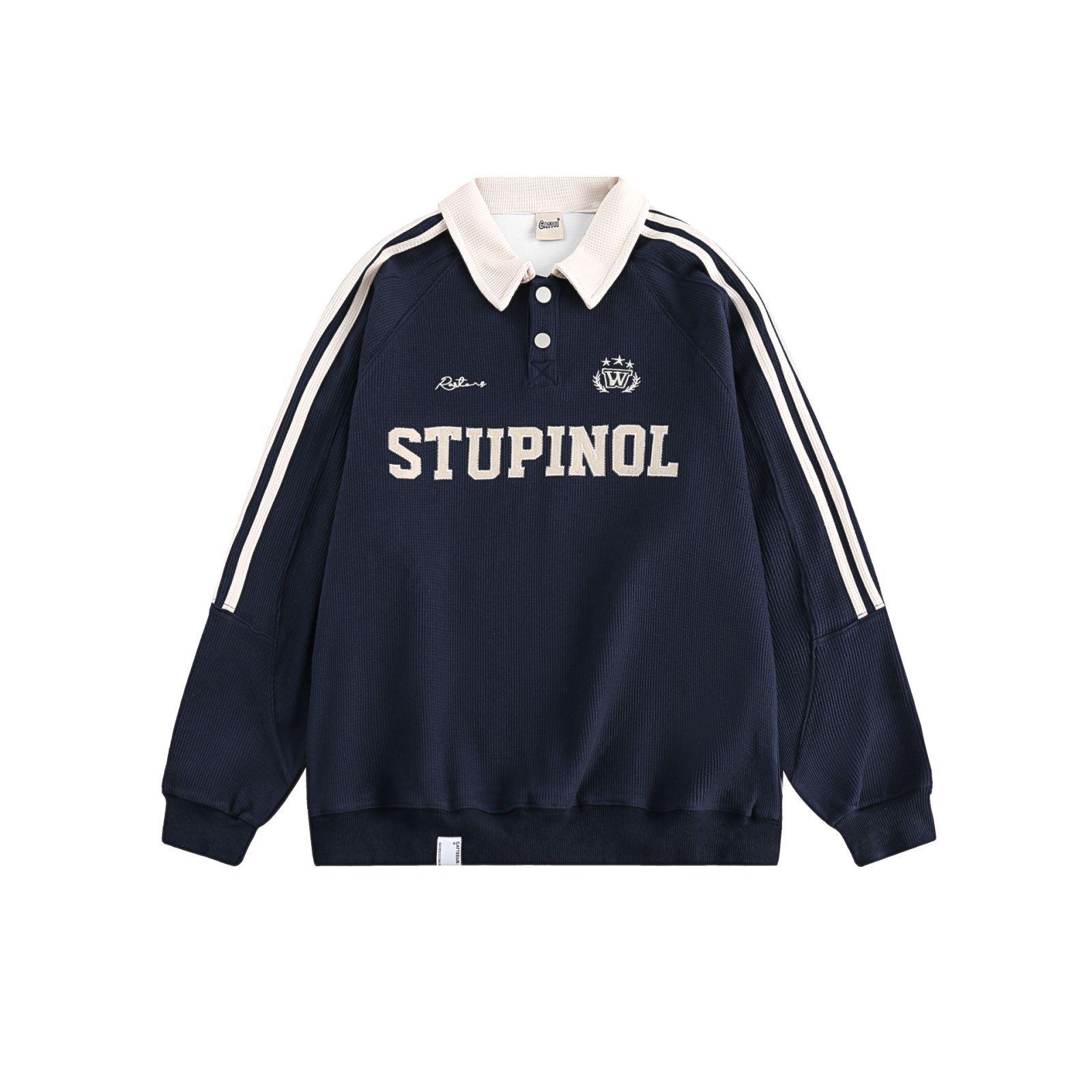 2025 Большой размер Ретро Колледж Стиль Толстовка с воротником поло для женщин - Весна и Осень Трендовая XL (125-150 kg recommended) темно-синий