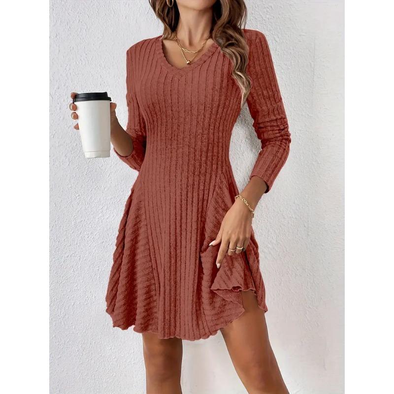 2025 Весна Осень Вязаное платье-свитер с V-образным вырезом и длинными рукавами Элегантное приталенное женское повседневное простое А-силуэта короткое платье Модная однотонная одежда для вечеринок XL
