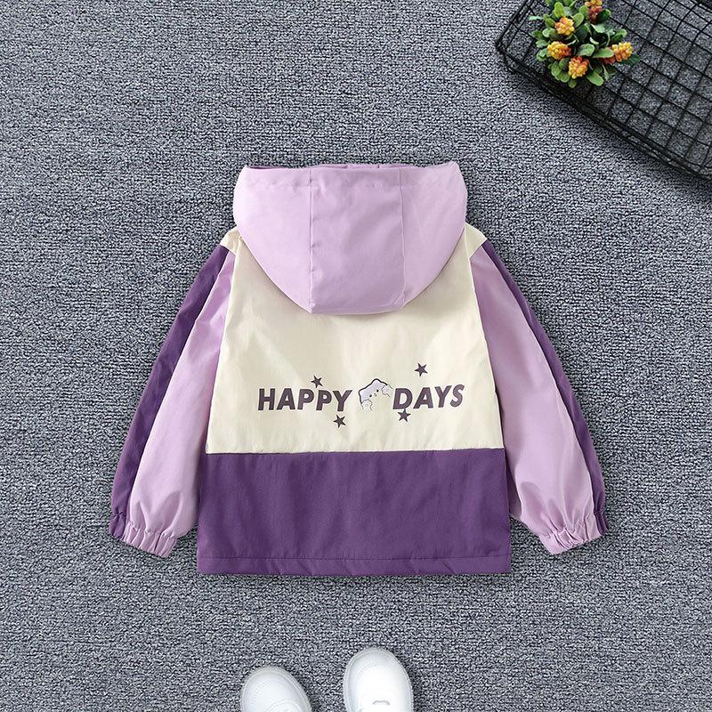 2025 Весна/Осень Корейский Стиль Куртка с Капюшоном с Принтом Букв для Девочек 130 cm фиолетовый