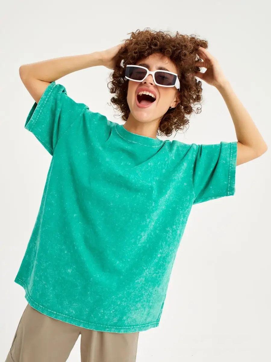 2025 Весна и лето Однотонная футболка женская стираная Do Old Batik Топы хлопковые с короткими рукавами молодежная женская одежда XL зелёный