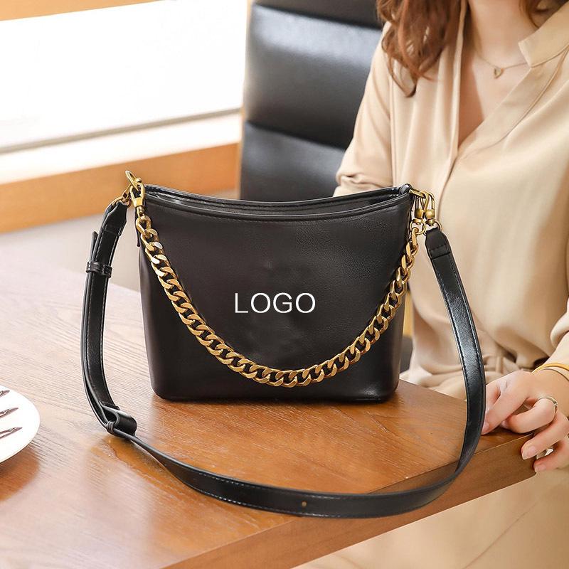 2025 Высококлассная европейская и американская ретро сумка-ведро на цепочке Ян - Универсальная, простая, вместительная сумка чёрный