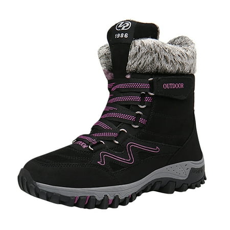 Wesracia Boots For Women Winter Boots Women s Fashion Casual Roman Short Ankle Snow Boots Chunky Heels Leather Shoes