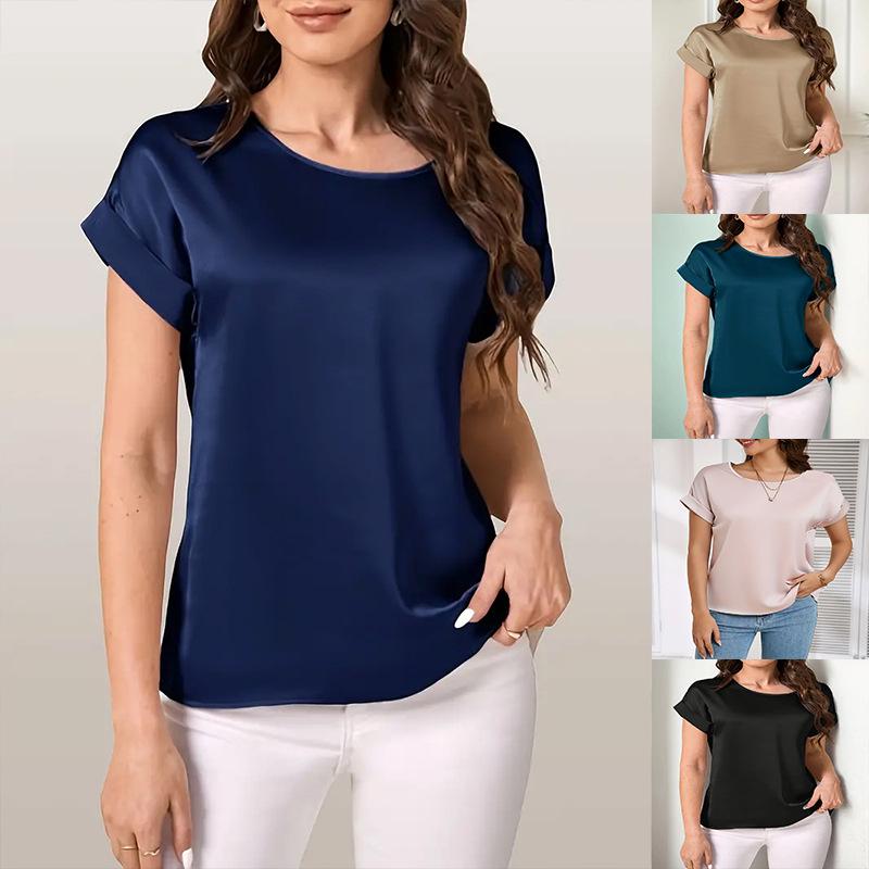 2025 Женская европейская и американская летняя футболка с круглым вырезом, свободного кроя, однотонная, повседневная 4XL темно-синий
