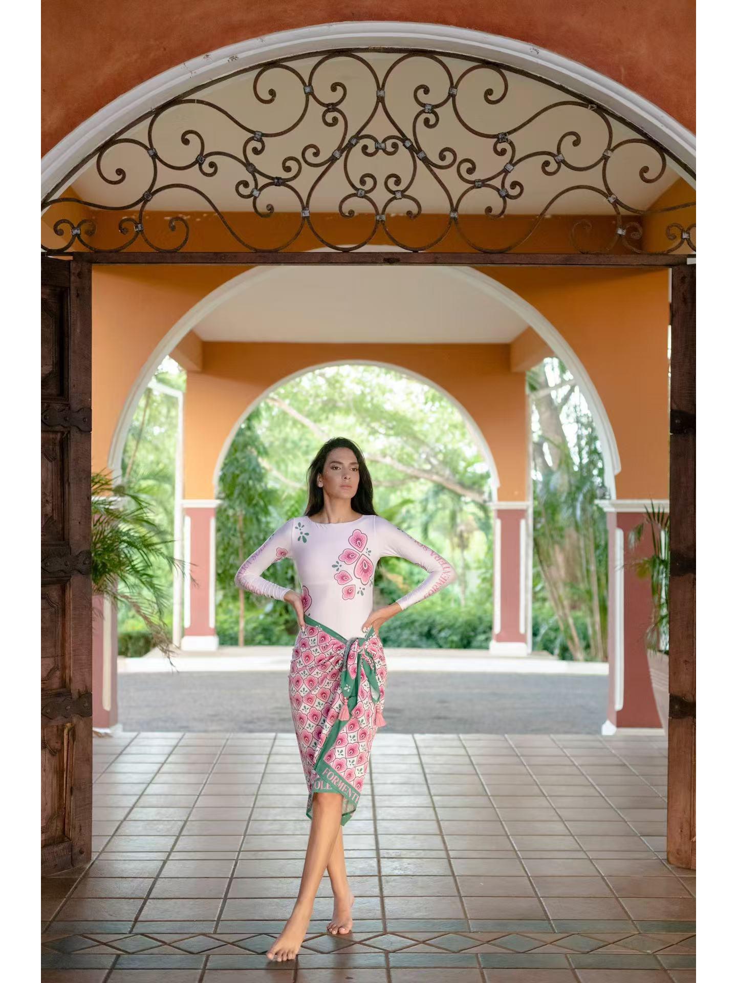 2025 Женский Европейский Американский Купальник Бикини с Длинным Рукавом с Принтом Защита от Солнца Цельный Купальное Платье One Size