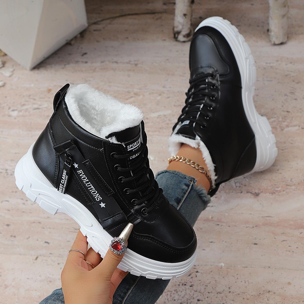 2025 Зимние Алфавитные Платформенные Хлопковые Туфли Женские Новые Маффины Флис На шнуровке Теплые Большого размера Зимние Ботинки 45 чёрный