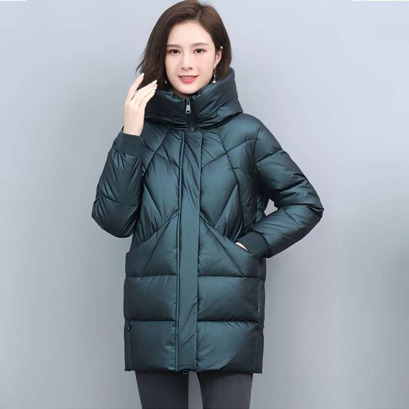 2025 Зимняя мода Новая хлопковая куртка средней длины Ромбовидная Для матери среднего возраста Свободное Теплое хлопковое пальто M чёрный