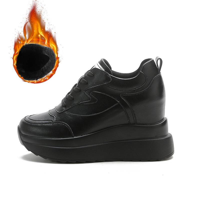 2025 Зимняя обувь Женские модные ботинки Натуральная кожа Увеличение роста 10 см Женские ботильоны на платформе Теплый плюш Черный Белый 34 чёрный