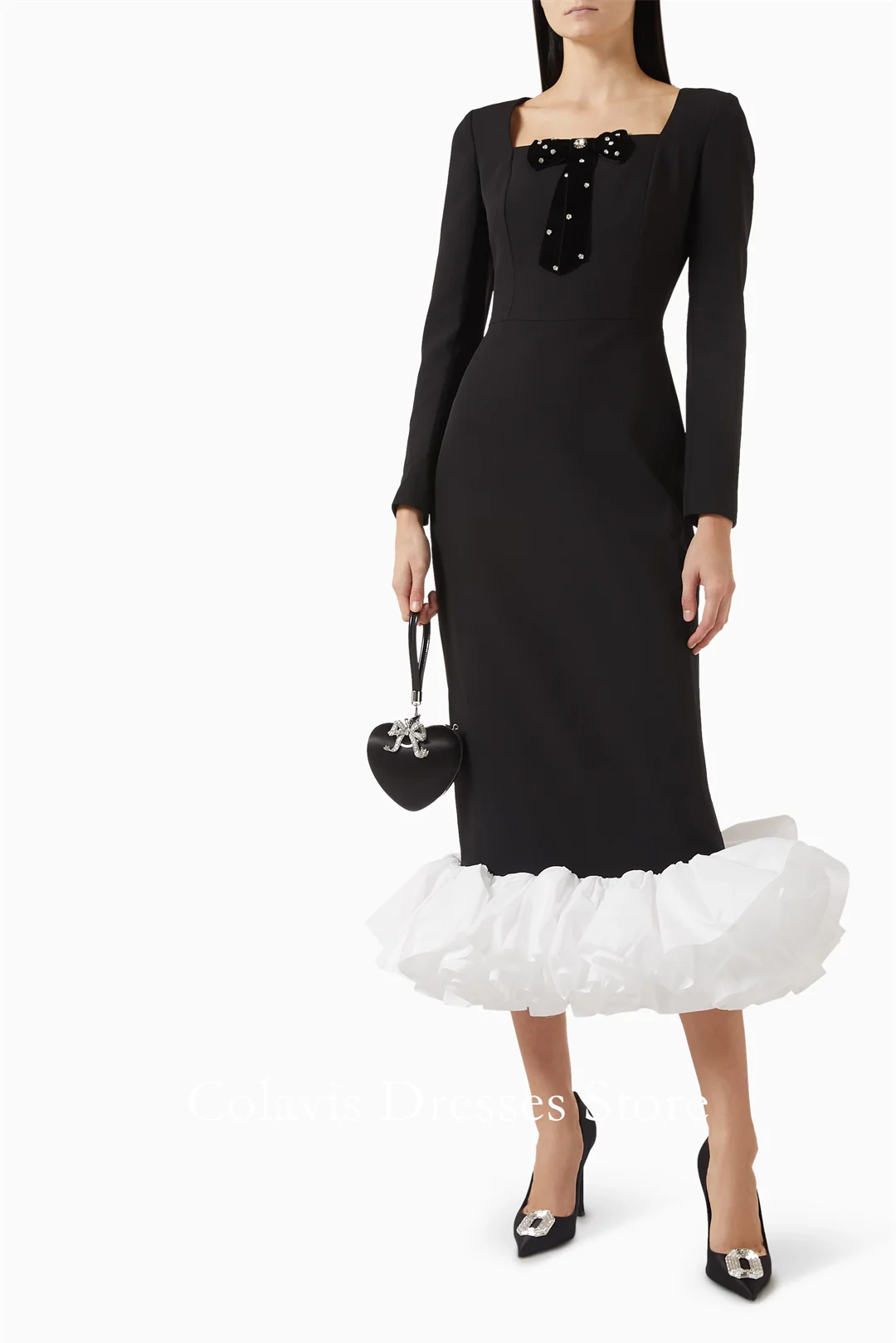 2025 Индивидуальные креповые черные платья с квадратным вырезом и длинными рукавами, большие размеры, платья для выпускного вечера, вечернее платье, женские вечерние платья, вечернее платье