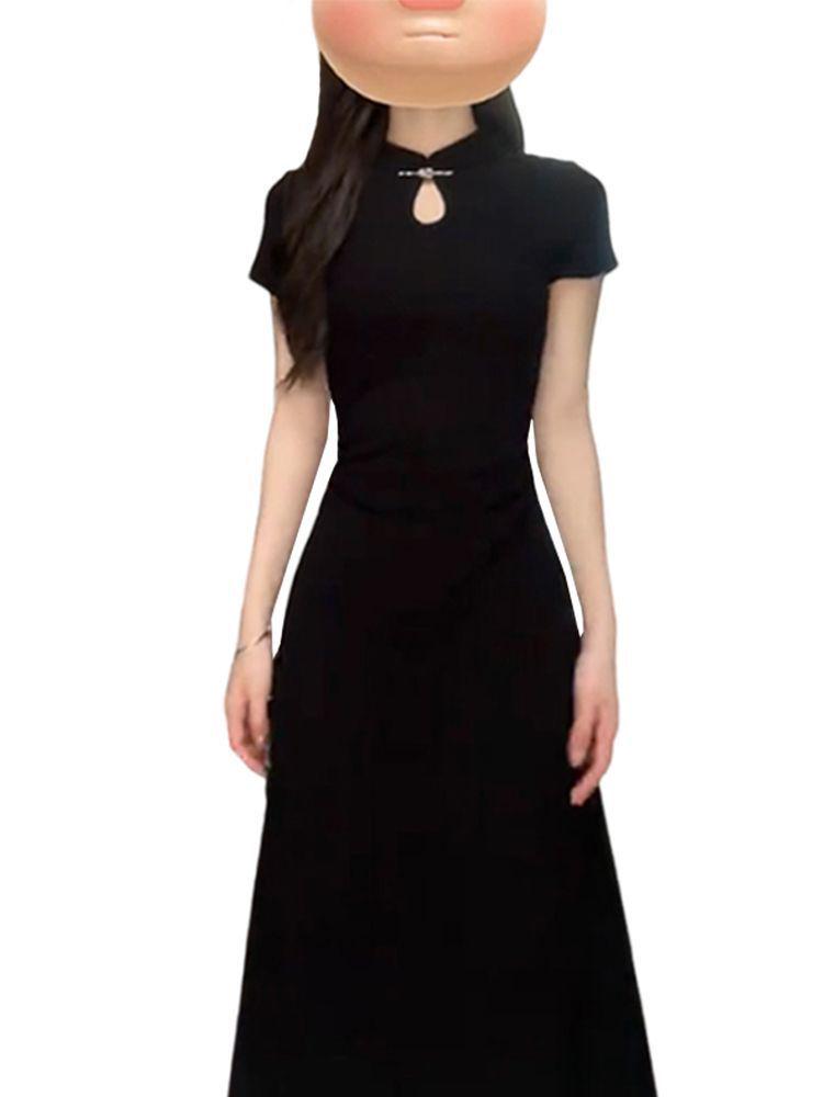 2025 Маленькое черное ципао: Стильное летнее платье в китайском стиле, стройнящее фигуру Small чёрный