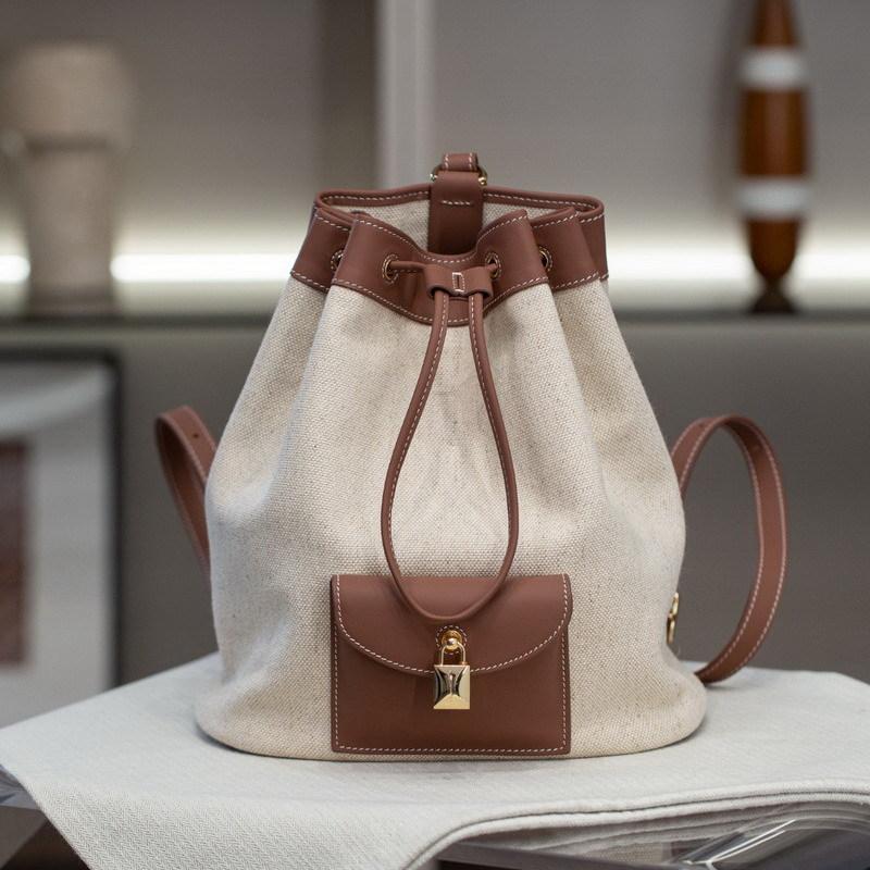 2025 Новая женская сумка из натуральной кожи, темпераментная, для поездок на работу, универсальная, повседневная, рюкзак на шнурке из коровьей кожи, простая сумка с пряжкой, маленькая 25x28x15CM коричневый
