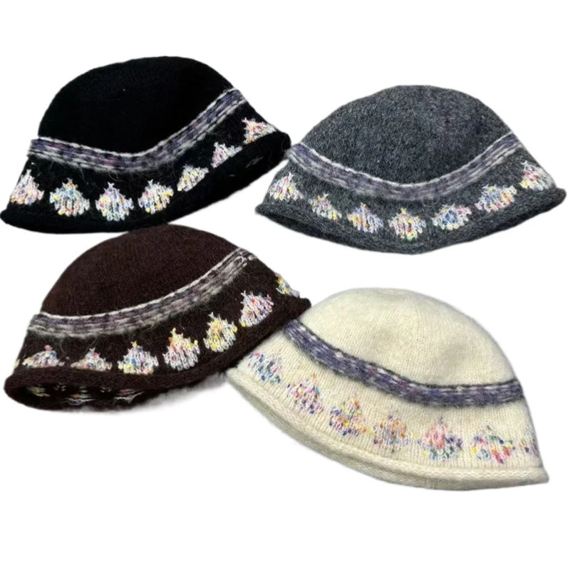 2025 Новая маленькая вязаная панама с кромкой по краю, женская осенне-зимняя теплая шерстяная шапка Show Face, маленькая однотонная панама с лицом