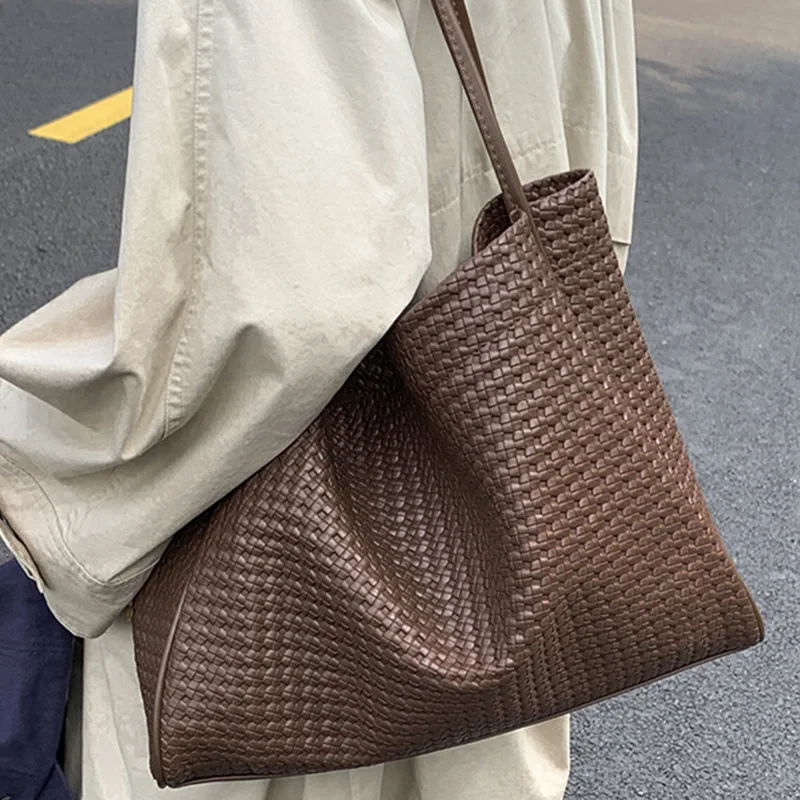 2025 Новая модная большая сумка, большая вместительная однотонная сумка на плечо, минималистичная винтажная эстетичная сумка для работы, путешествий, ежедневного использования