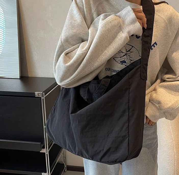2025 Новая модная сумка High Beauty, милая, мягкая, универсальная, популярная сумка на плечо, однотонная нейлоновая сумка на молнии, женская большая сумка