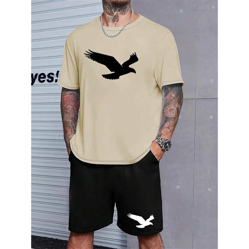 2025 Новая мужская футболка с принтом орла Temperament, модные шорты, двухкомпонентная летняя мужская модная футболка-шорты, дышащая спортивная одежда S