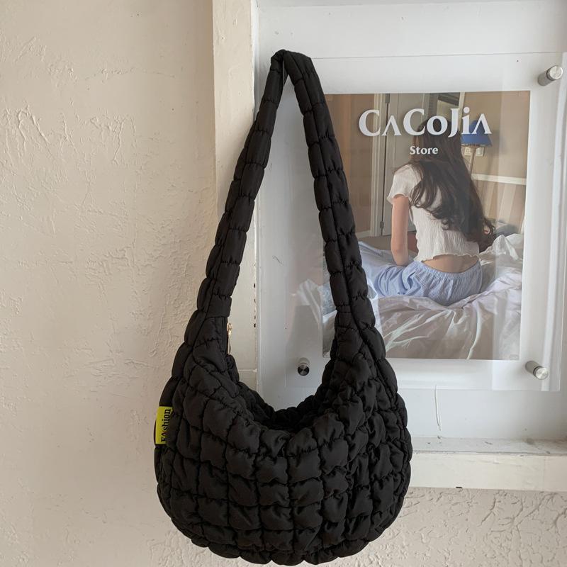 2025 Новая плиссированная сумка-облако из Южной Кореи, модная одноплечевая портативная сумка-пельмень большой вместимости из пухового хлопка, женская сумка под мышку чёрный