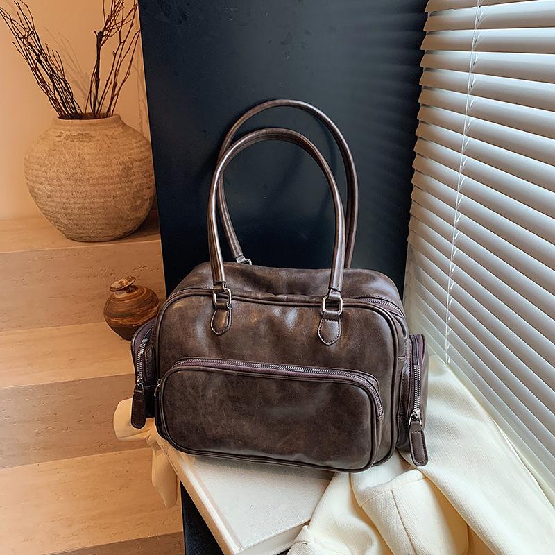2025 Новая ретро коричневая сумка через плечо для боулинга, осенне-зимняя универсальная повседневная многофункциональная сумка для подмышек для женщин темно-коричневого